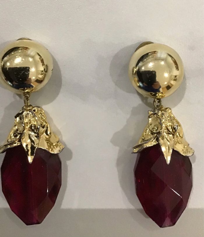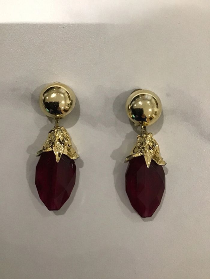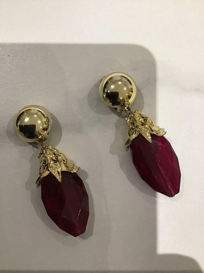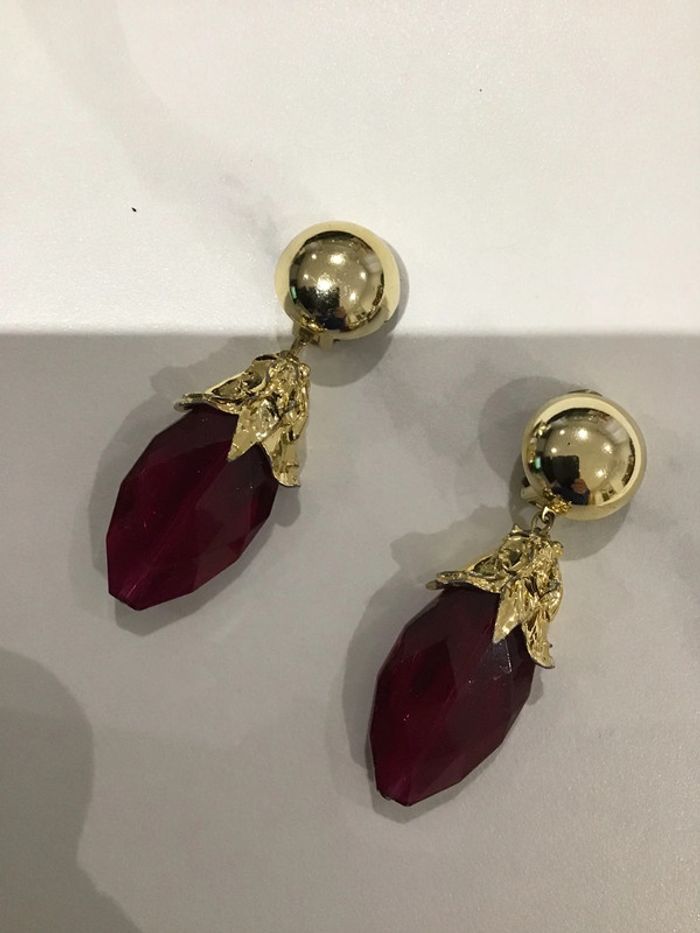 Années 80 Monture dorée avec corolle ouvragée sur pendants pierres façon navettes Superbe rendu