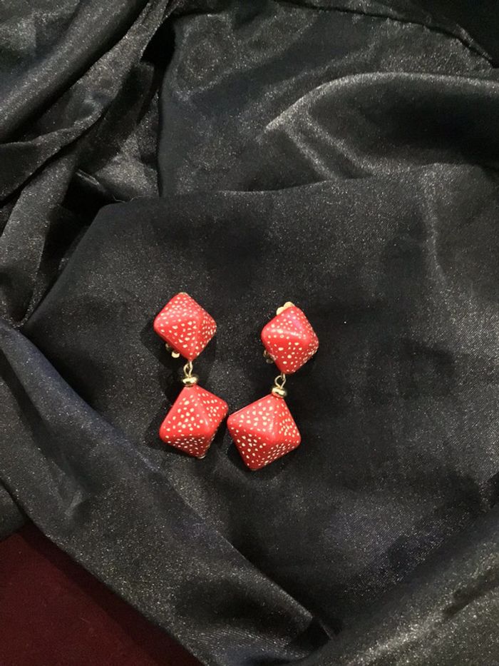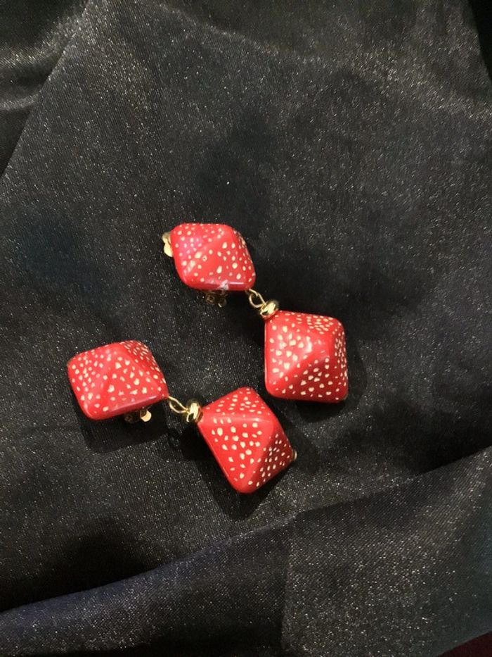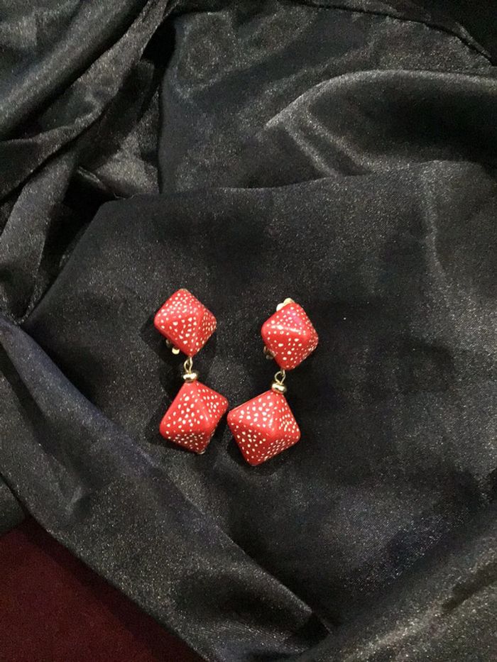 Beaux clips géométriques avec pendants rouges mouchetés de blanc Beau rendu