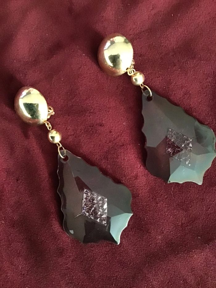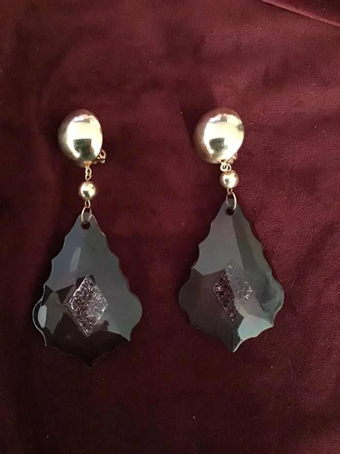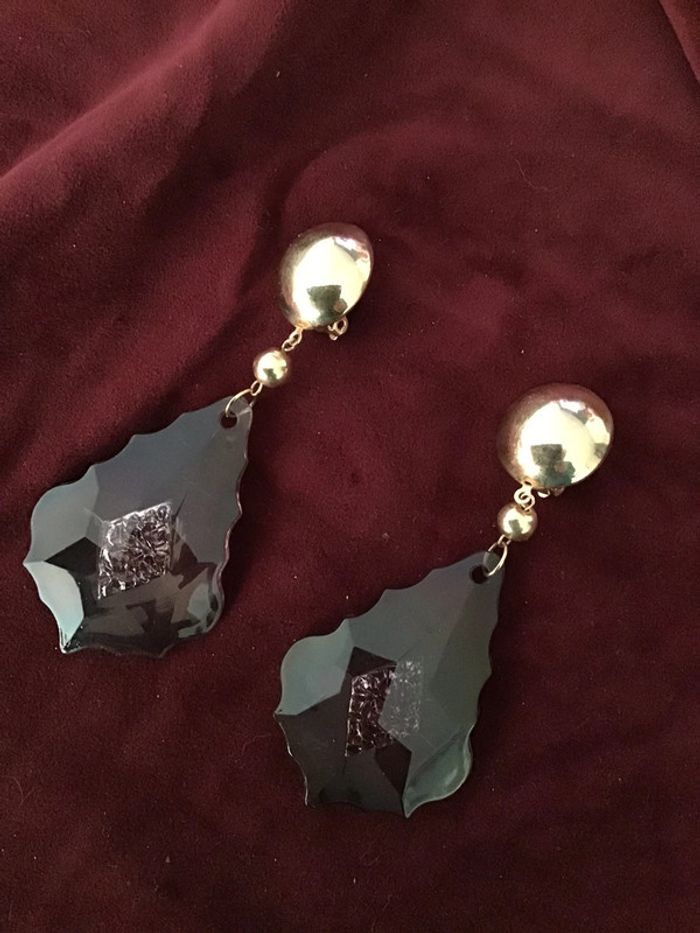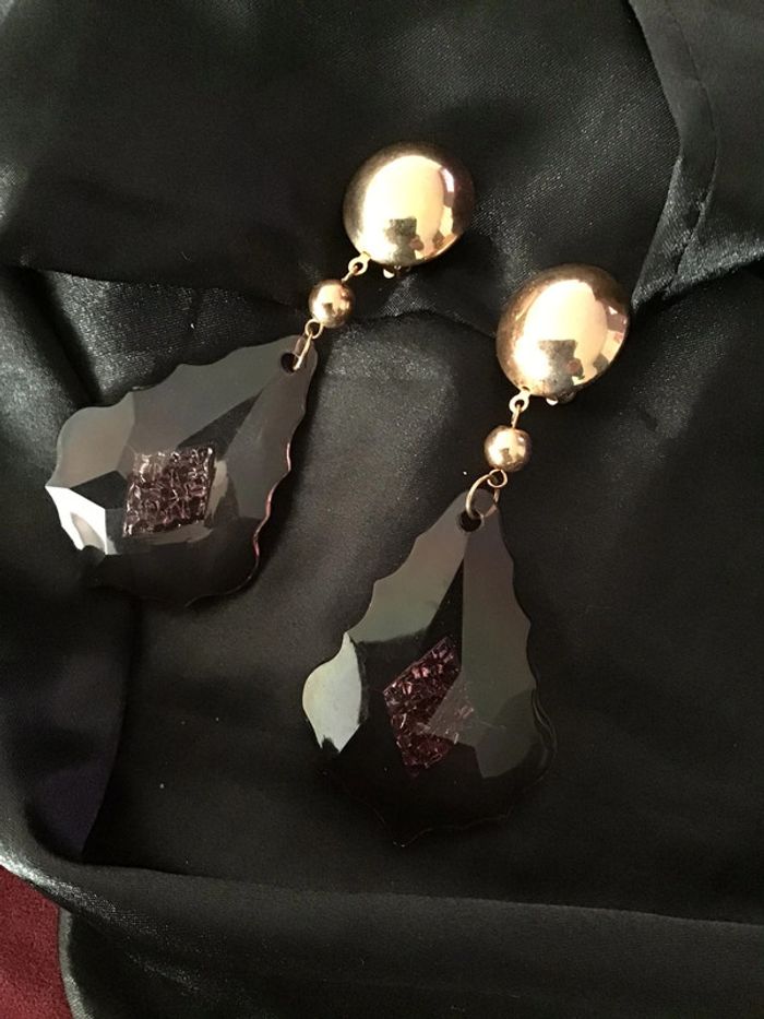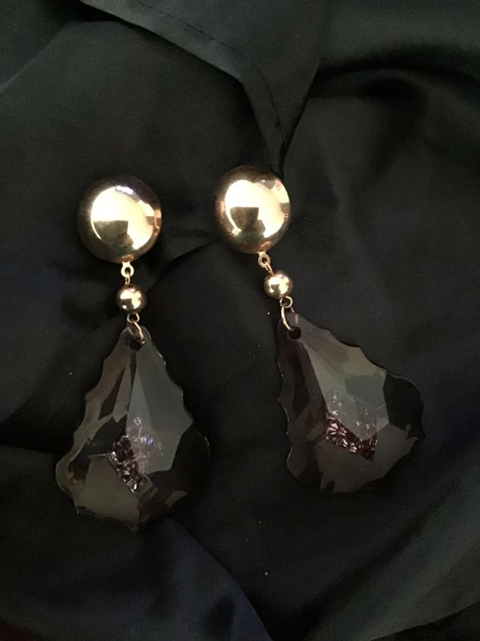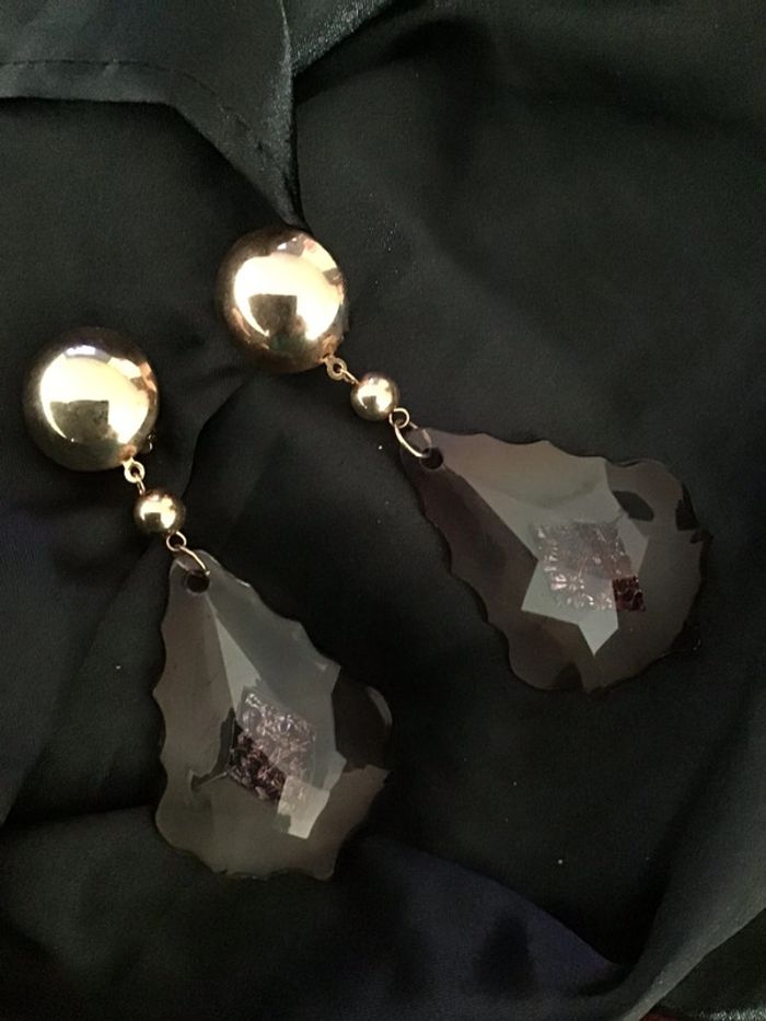 Années 80 Magnifiques pendants type pampilles fumées crénelées avec motif central incrusté Sublime rendu