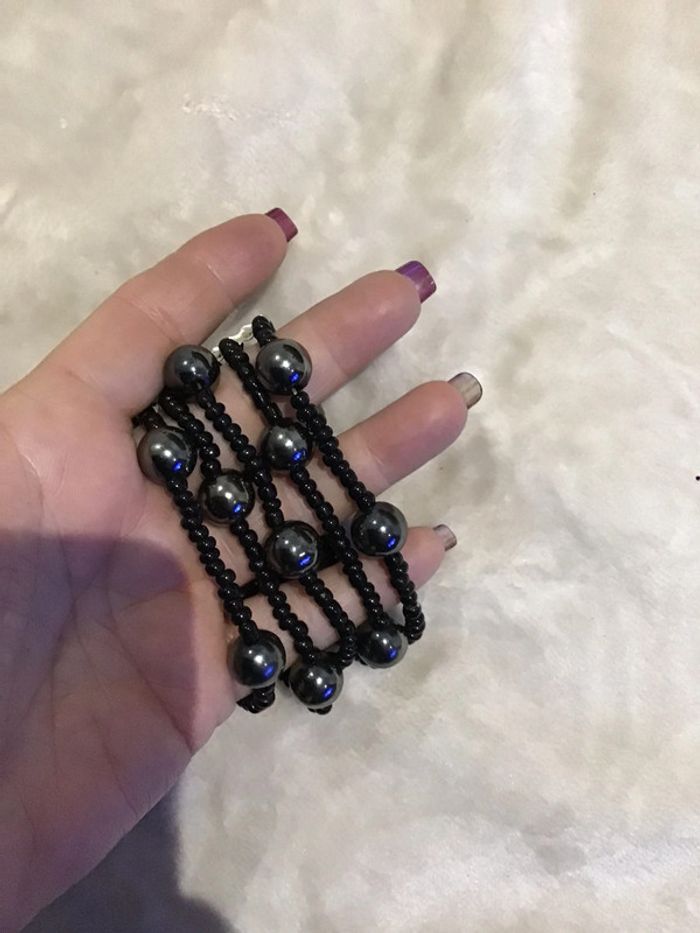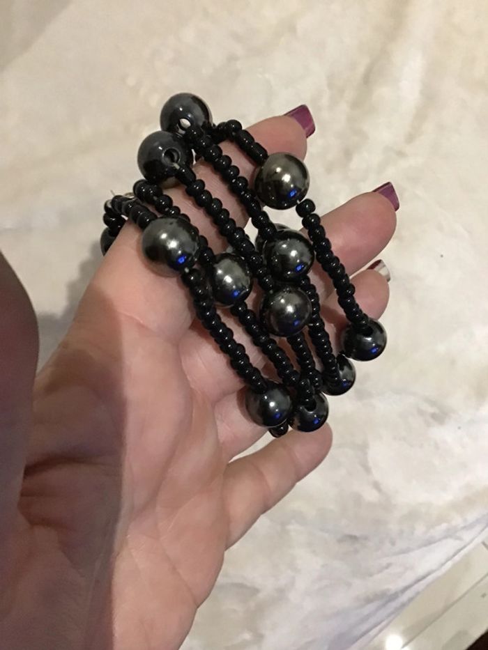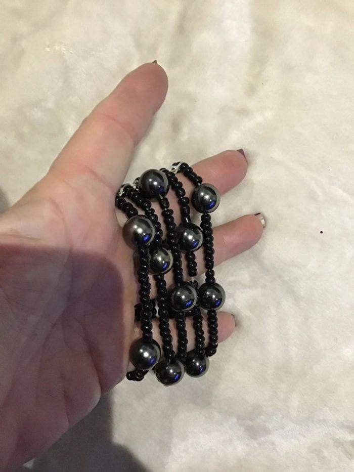 Années 90 Cinq rangs de petites perles noires agrémentées de grosses perles noires Adaptable