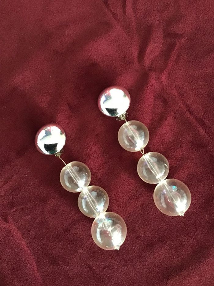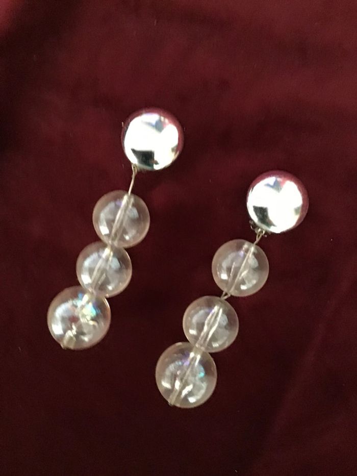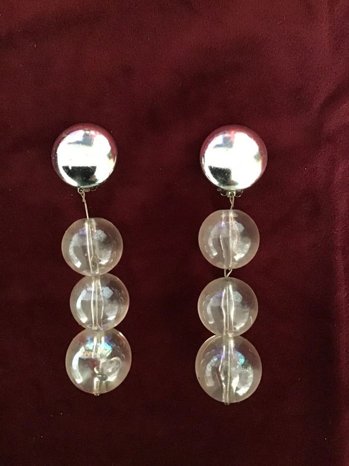 Années 80 Pendants trois boules transparentes reflets arc-en-ciel Magnifique rendu