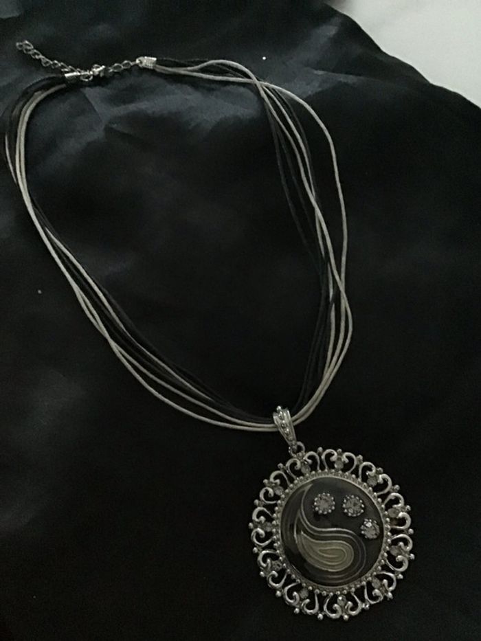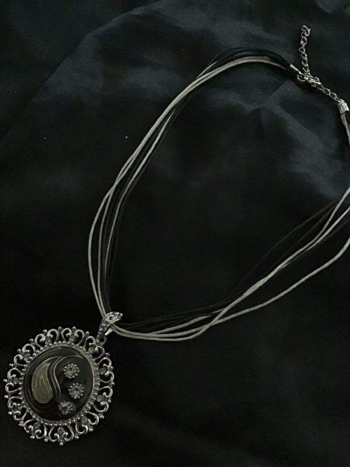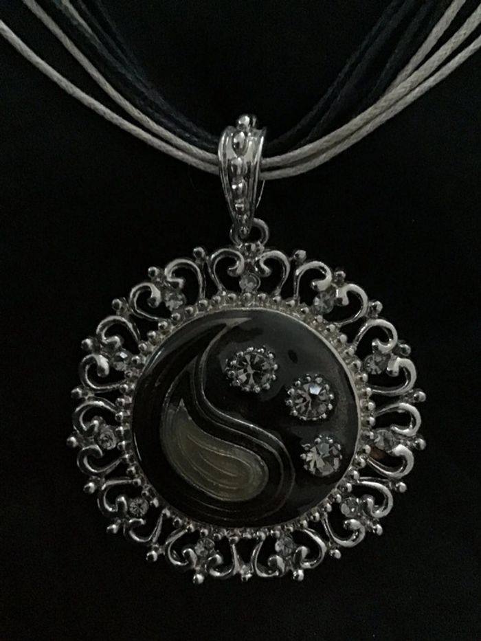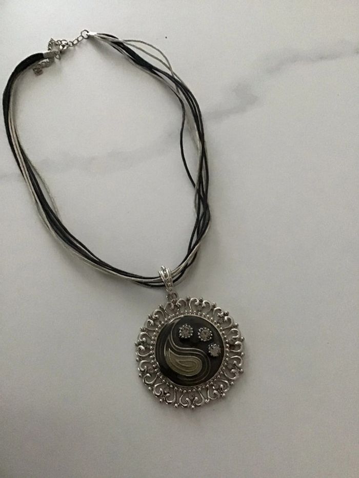 Beau médaillon ouvragé avec motif central façon émaux orné de trois petites pierres Joli rendu
