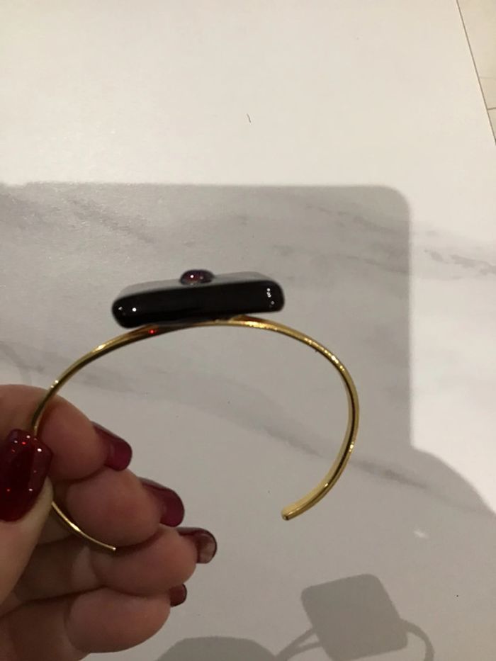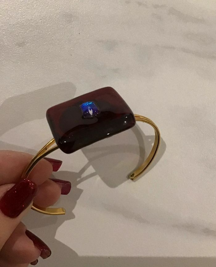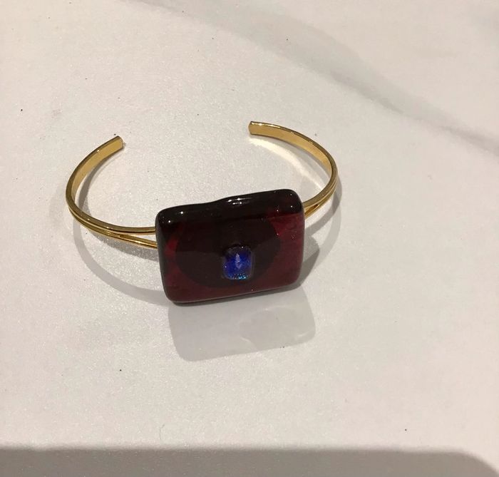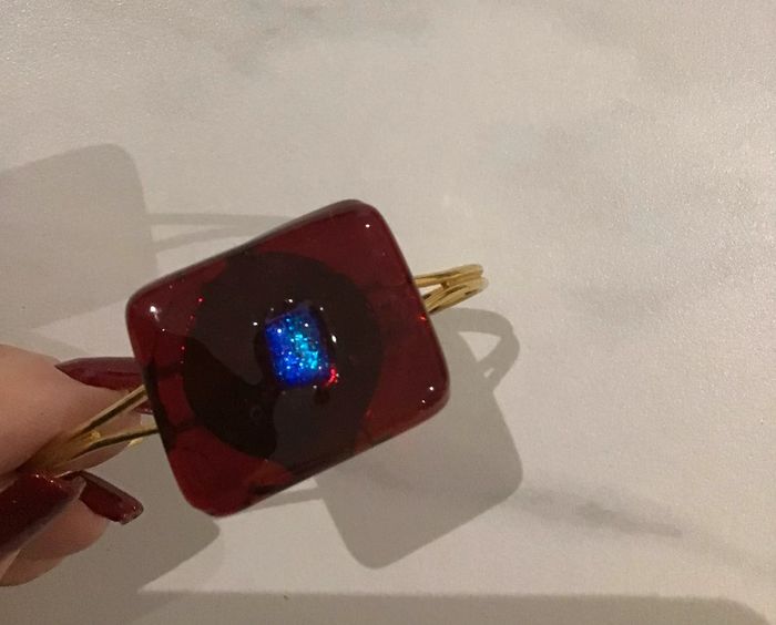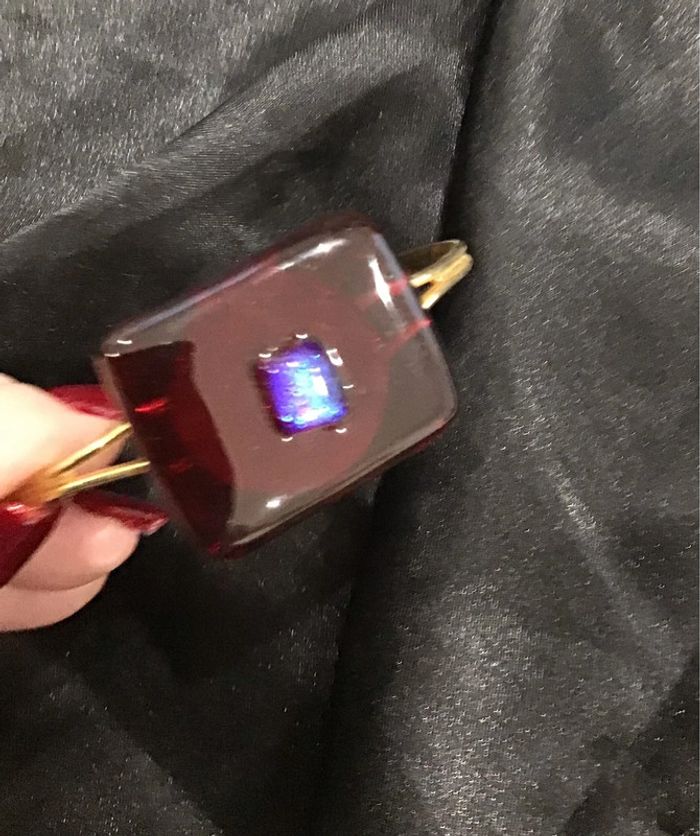 Rectangle résine rouge avec inclusion bleue centrale Sur monture dorée réglable Très original Jamais porté