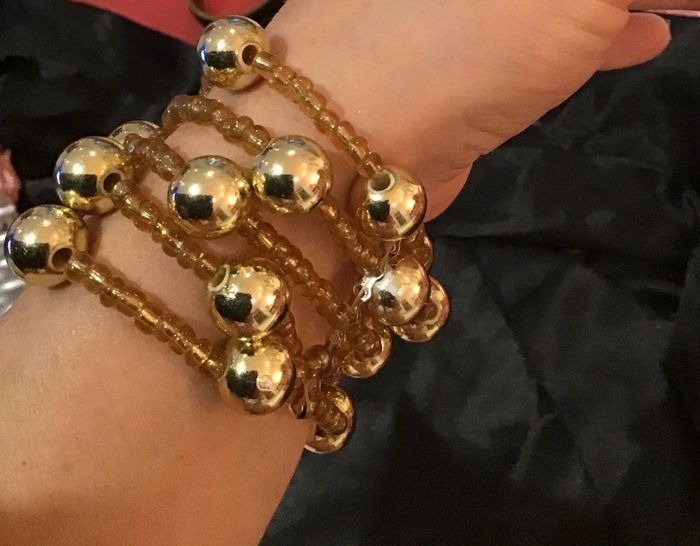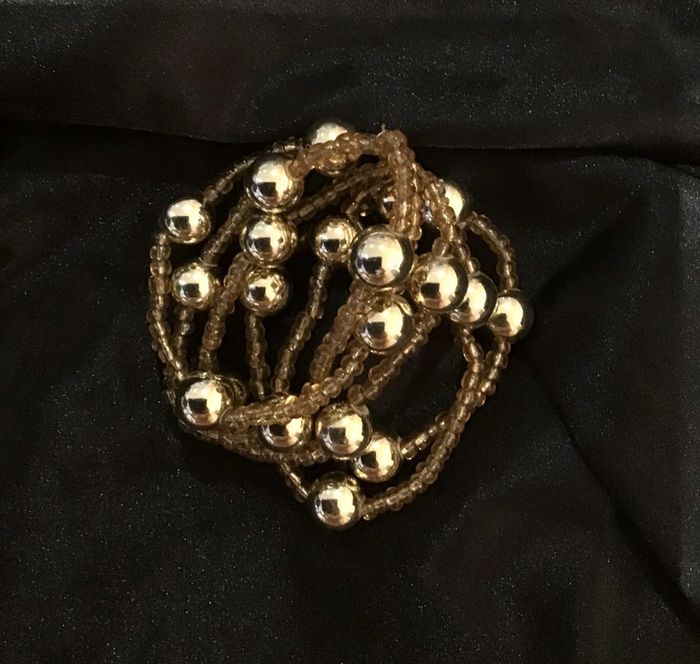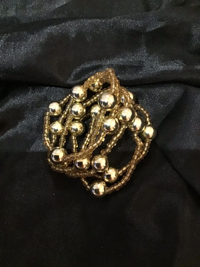 Années 90 Boules dorées et petites perles 5 rangs élastiques