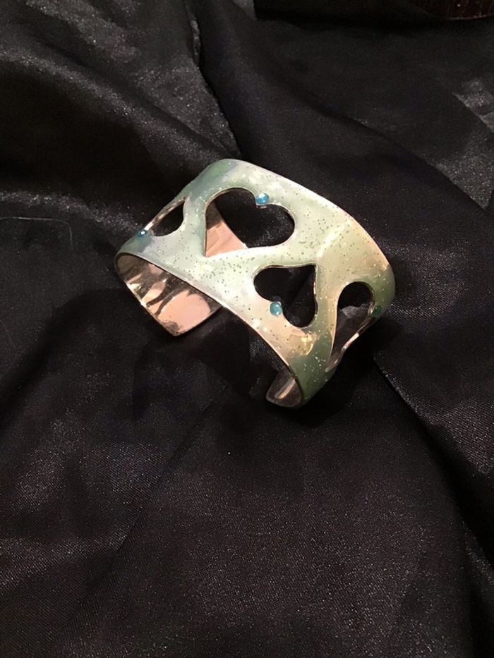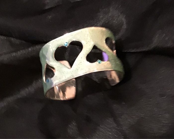 Joli manchette coeurs métal argenté bleu irisé - photo numéro 2