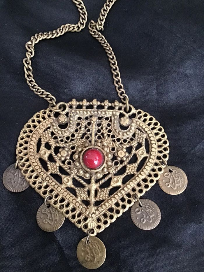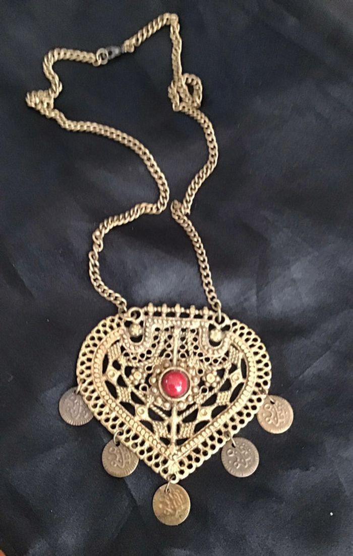Gros médaillon façon bronze crénelé orné de petite médailles ciselées avec perle centrale