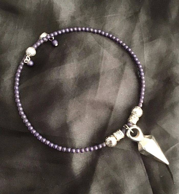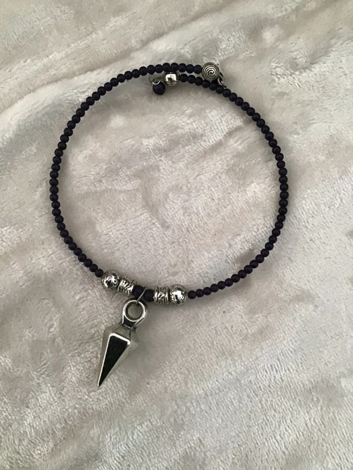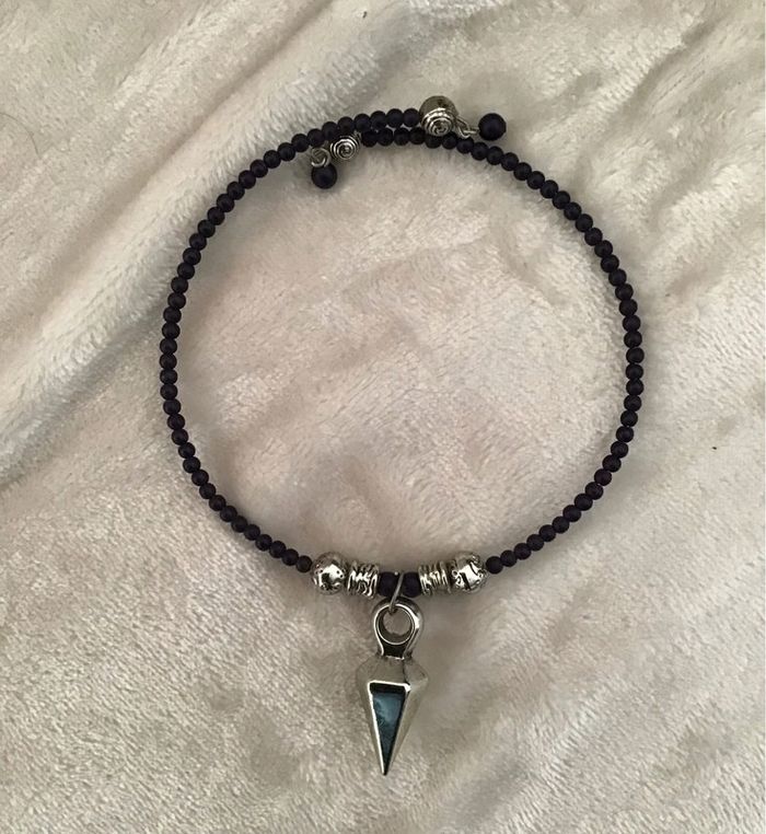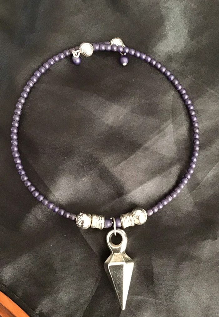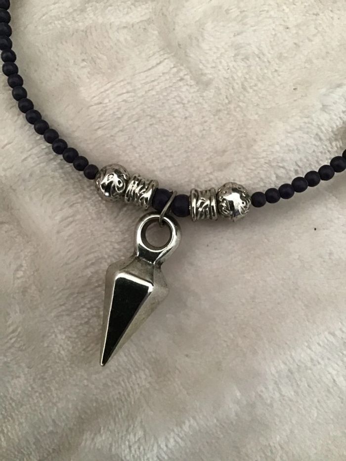 Tour de cou petites perles avec pendant géométrique Réglable car il se tend. S’adapte à tous les cous Très léger