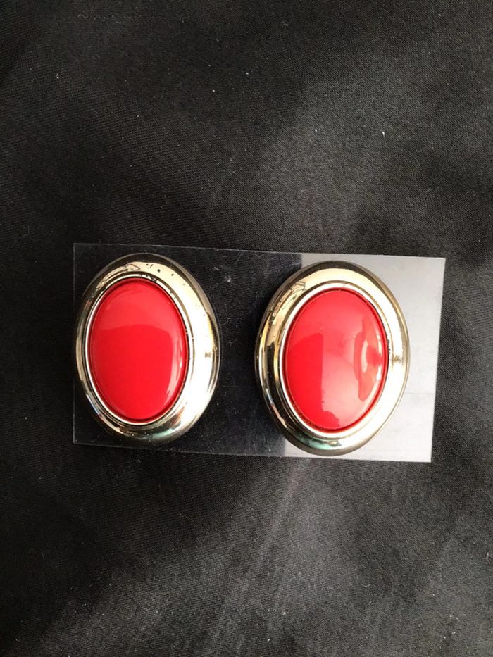 Rouge vermillon sur monture ovale dorée Beau rendu