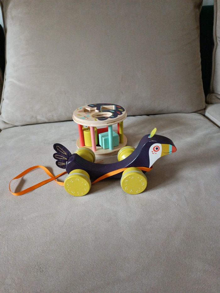 Jouet à tirer Moulin Roty Toucan boîte à formes à tirer Dans la jungle