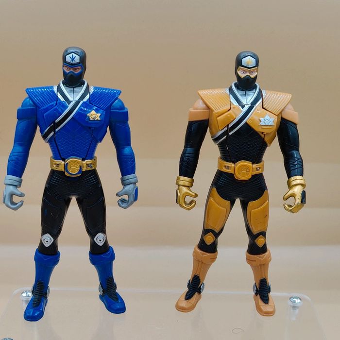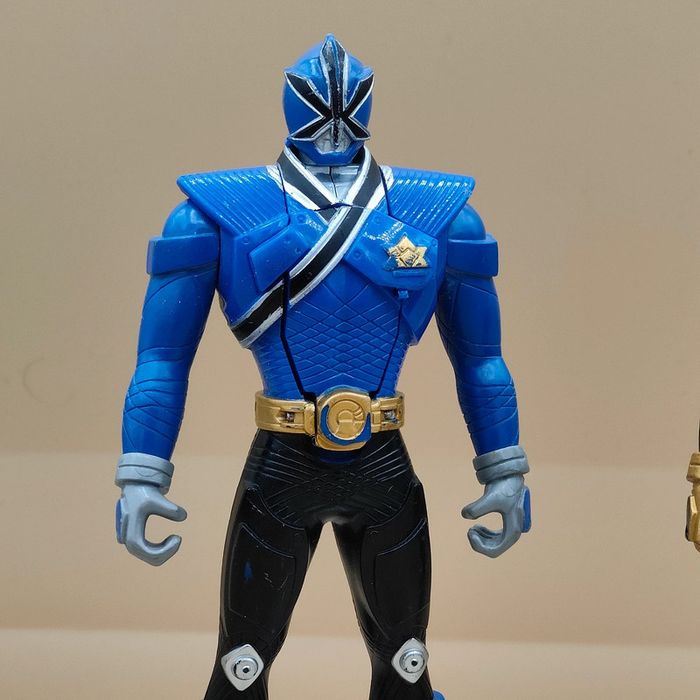 2 figurines Samouraï avec tête interchangeables bleue et dorée. Environ 15cm. Très bon état. Usure habituelle sur des jouets de cette génération. Me contacter pour faire un lot. D'autres figurines power rangers sont disponibles avec le mot-clef : #BracBricBrocSamourai Envoi rapide en 24/48h. #bandai #powerrangers #powerranger #retrogame #supersentai #sentai #figurine #actionfigure #collection #bracbricbroc #MMPR