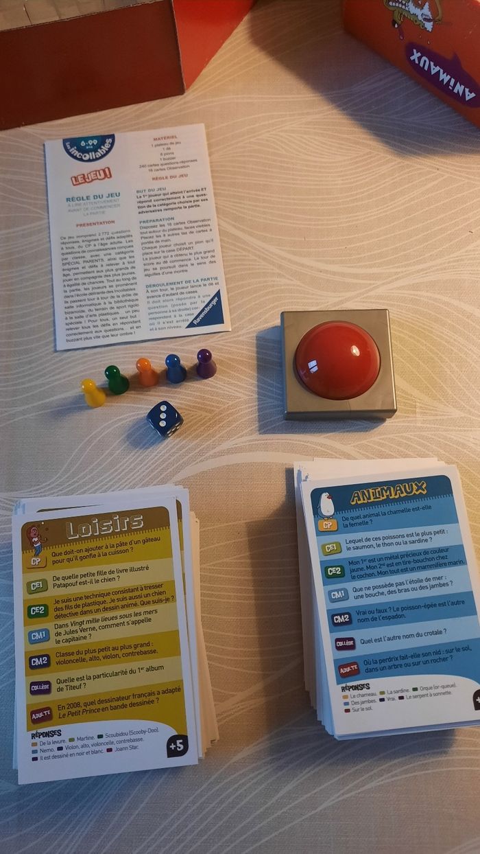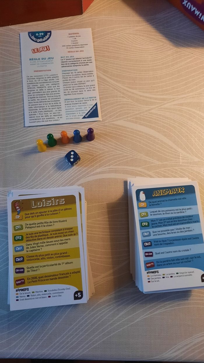 Jeu de société avec notice Les incollables Jeu incomplet manque un pion Boîte et intérieur légèrement abîmés