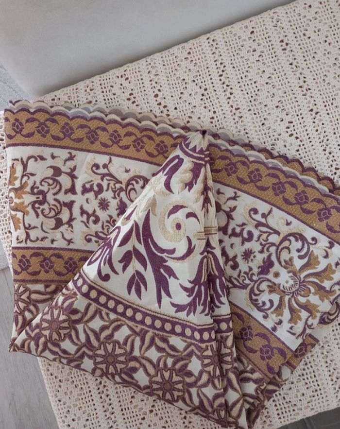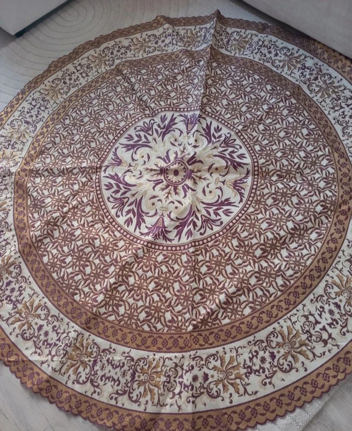 BELLE NAPPE RONDE DORÉE & BORDEAU POUR TABLE RONDE TAILLE 167 CM DE DIAMÈTRE IDÉAL POUR LA DECO DE FIN D'ANNÉE 🌟 D'AUTRES ARTICLES A PETIT PRIX MEME TAILLE CLIQUER SUR #venteshop_decoration