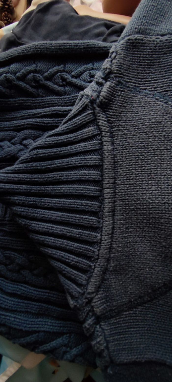 Gilet grosse maille bleu marine, fermeture boutons et petit col. Marqué un peu par les lavages (couleur). * Reste en TRES BON ETAT malgré tout *