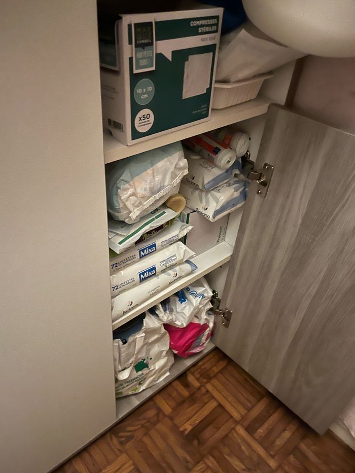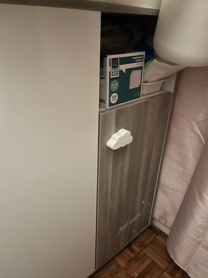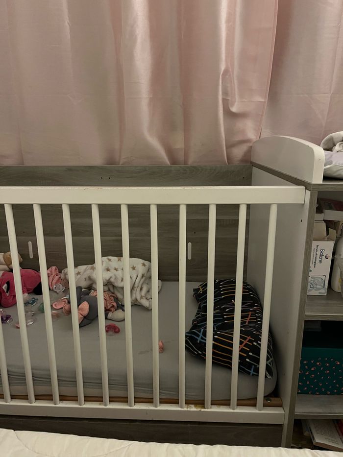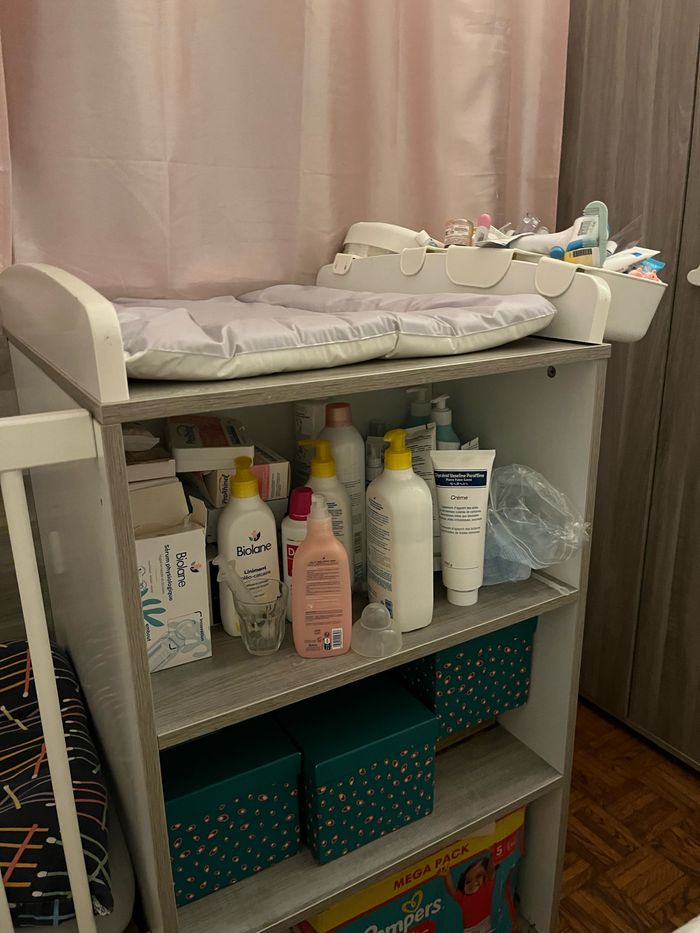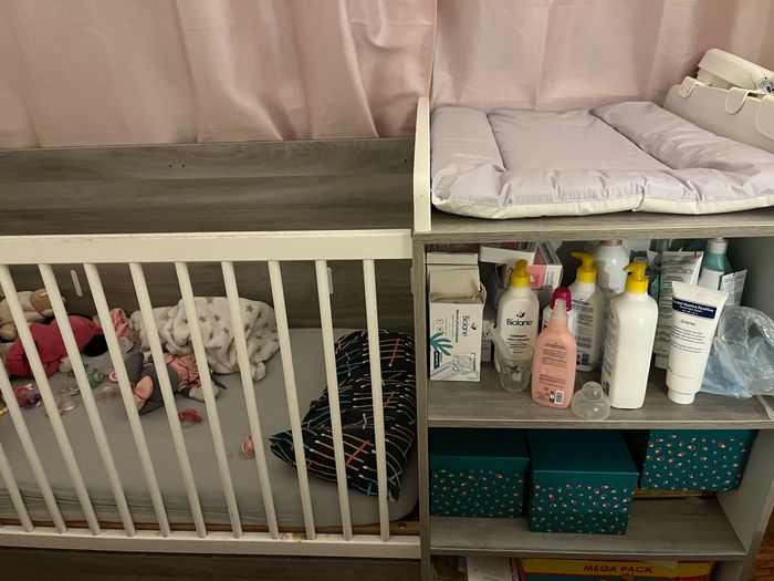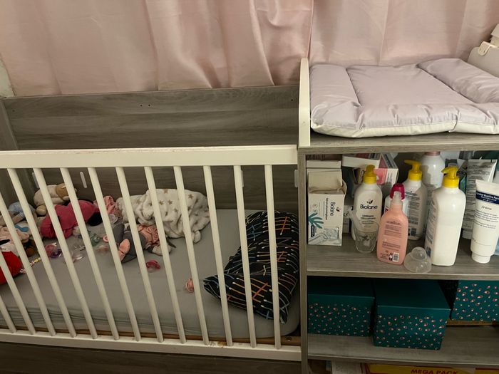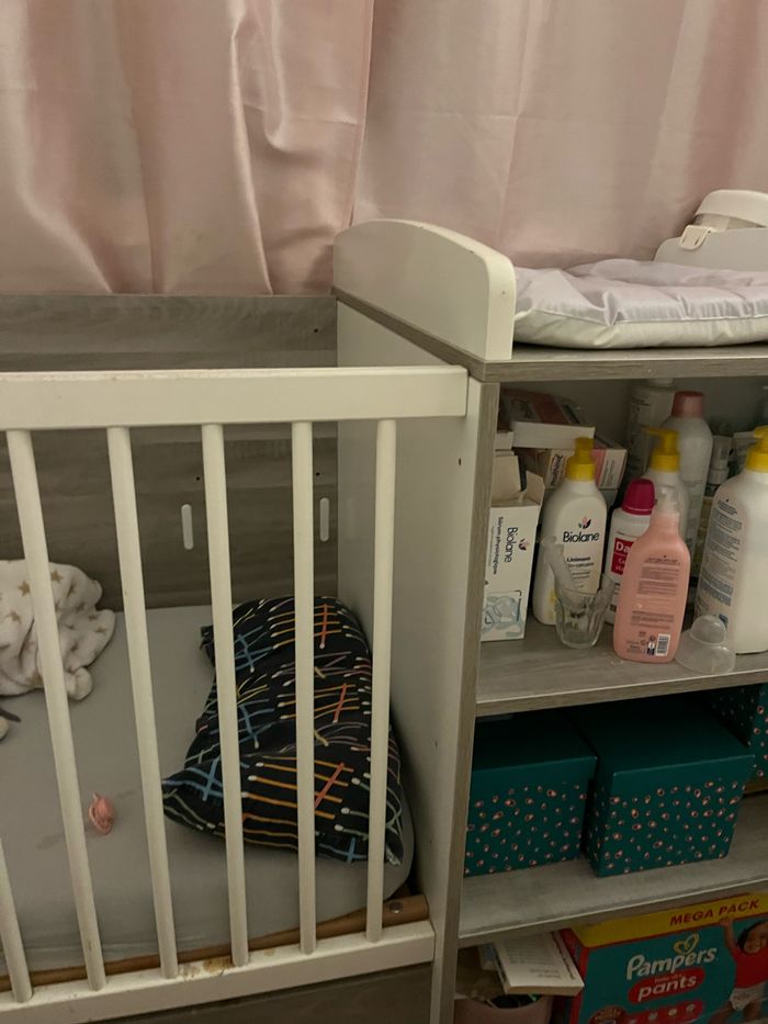 Je vends un lit bébé combiné table à langer comprenant un petit placard et rangements de la marque Verbaudet.