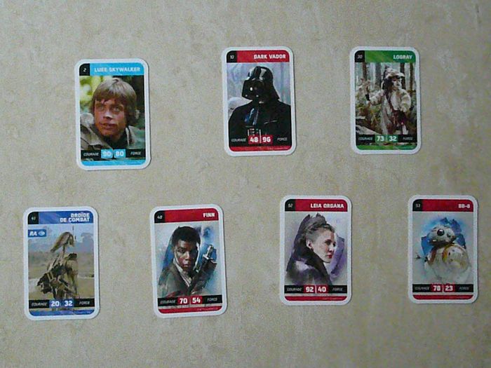 Lot de 5 cartes Star Wars – Cartes Leclerc 2018 5 cartes au choix parmi les numéros suivants : 1 ; 2 ; 3 ; 5 ; 6 ; 7 ; 9 ; 10 ; 12 ; 13 ; 14 ; 15 ; 18 ; 19 ; 20 ; 21 ; 22 ; 23 ; 24 ; 25 ; 26 ; 27 ; 28 ; 29 ; 30 ; 31 ; 32 ; 33 ; 34 ; 35 ; 36 ; 37 ; 38 ; 40 ; 41 ; 42 ; 43 ; 44 ; 45 ; 46 ; 47 ; 48 ; 49 ; 50 ; 51 ; 52 ; 53 ; 54 ; 55 ; 56 ; 58 ; 59 ; 60 ; 61 ; 63 ; 64 ; 65 ; 66 ; 67 ; 68 ; 70 ; 71 ; 72 ; 73 ; 74 ;75 ; 76 ; 77 ; 79 ; 80 ; 81 ; 82 ; 83 ; 84 ; 85 ; 86 ; 87 ; 88 ; 89 1 € les 5 cartes