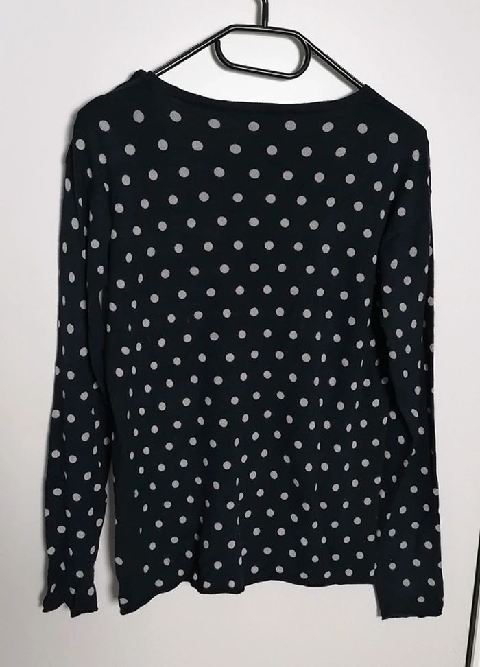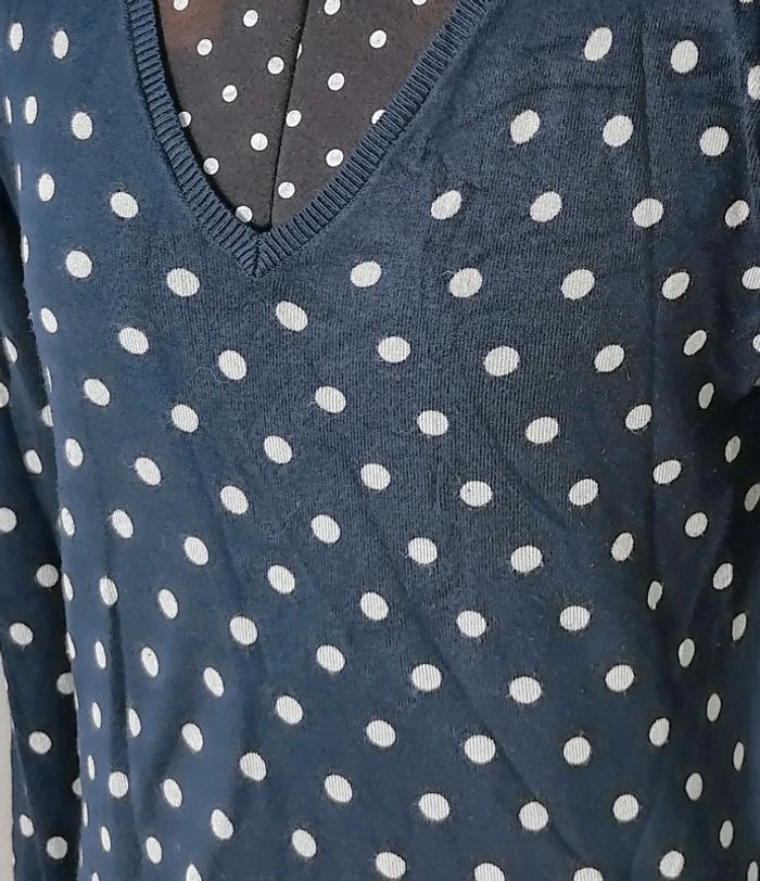 Pull léger à pois bleu marine et blanc Taille S Caroll - photo numéro 2