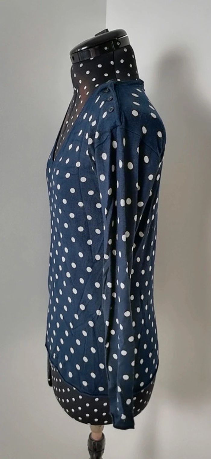 Pull léger à pois bleu marine et blanc Taille S Caroll - photo numéro 8