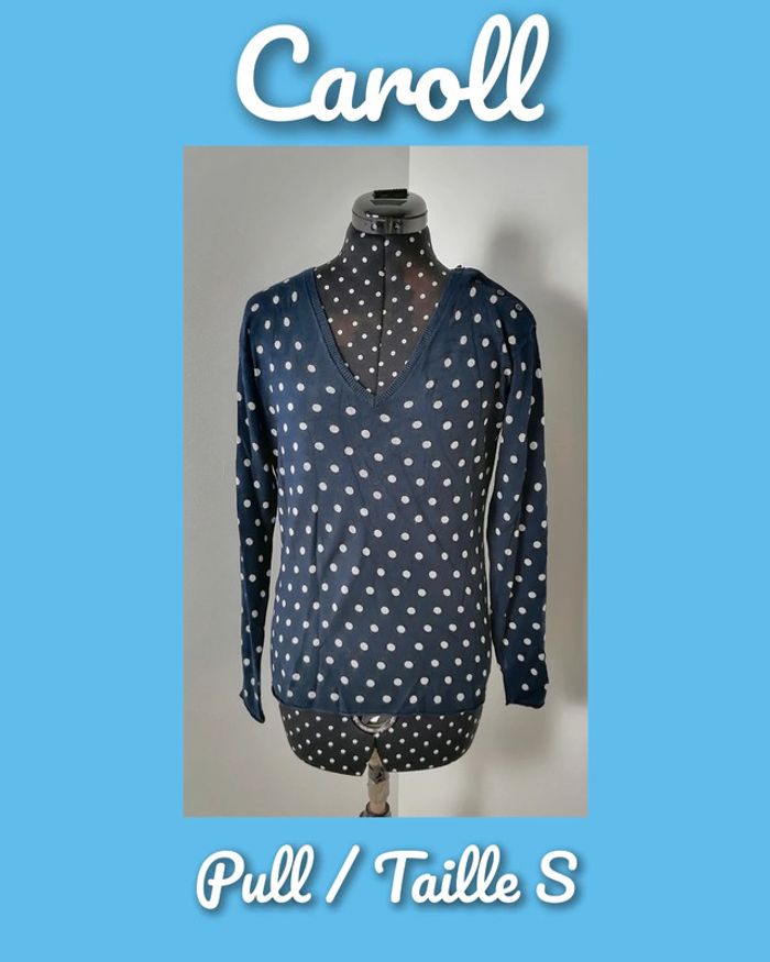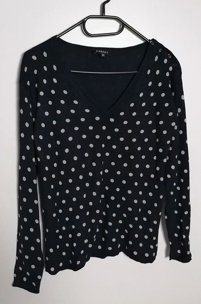 Pull léger à pois bleu marine et blanc Taille S Caroll - photo numéro 1