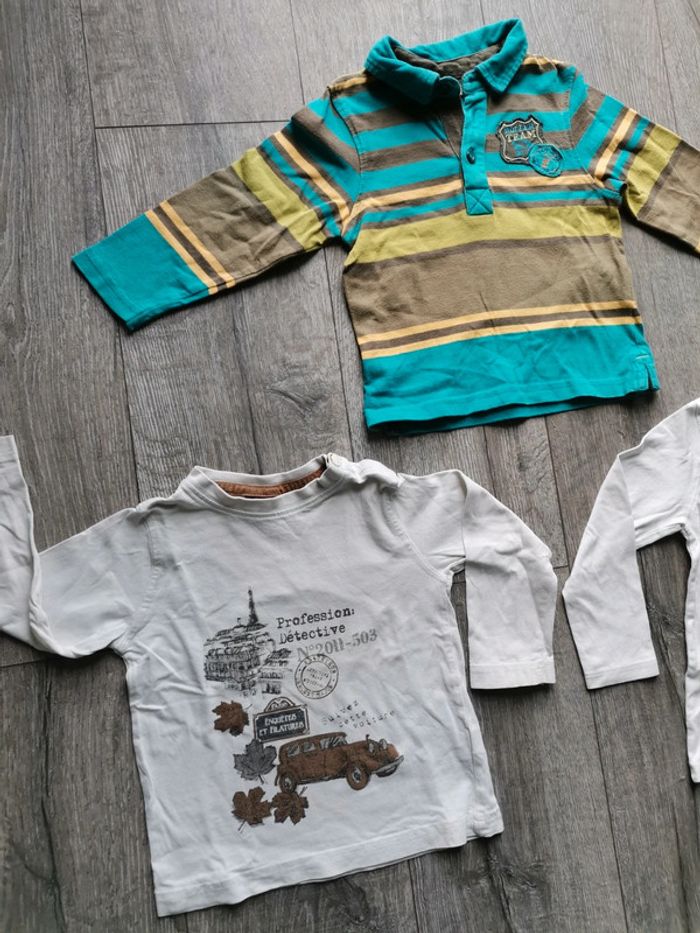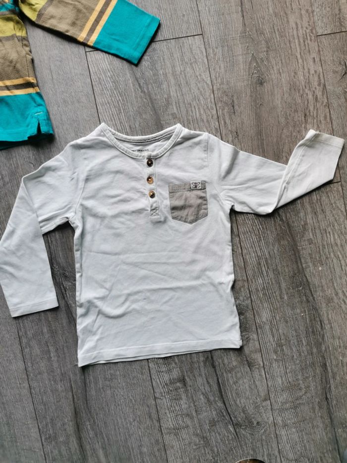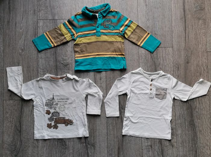 Lot hauts 2 ans. Le blanc a boutons est très légèrement jauni au dessus du bouton du col cf photo. Sergent major, orchestra et vert baudet. #garçon2ansptilu12