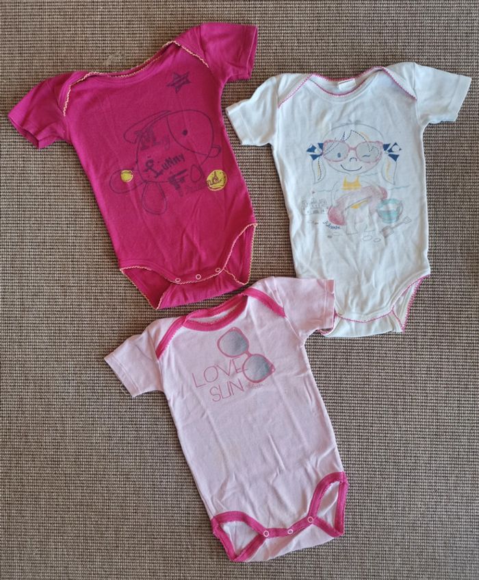 Lot de 3 bodies fille 1 an, manches courtes. - photo numéro 1