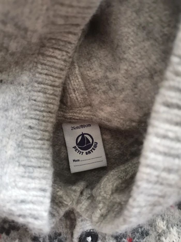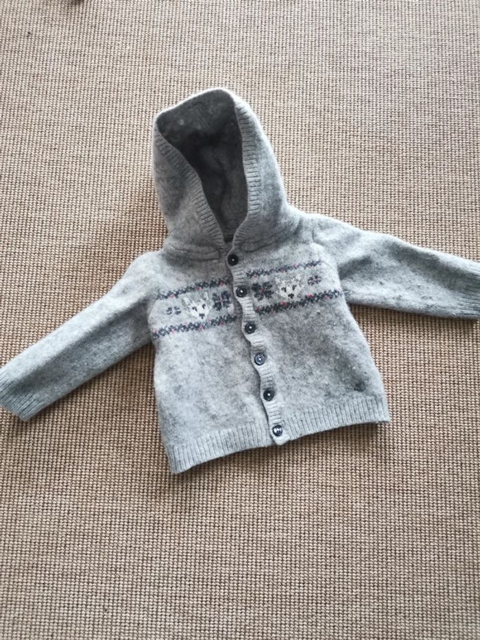 Gilet à capuche gris, fermeture à boutons. Marque petit bateau. Très bon état. Taille inscrite 24 mois, mais taille très petit, adapté 18 mois. #garçon18moisptilu12 #gilet18mois #vetementsgarçon #petitbateau #petitbateau2ans #petitbateaugarçon