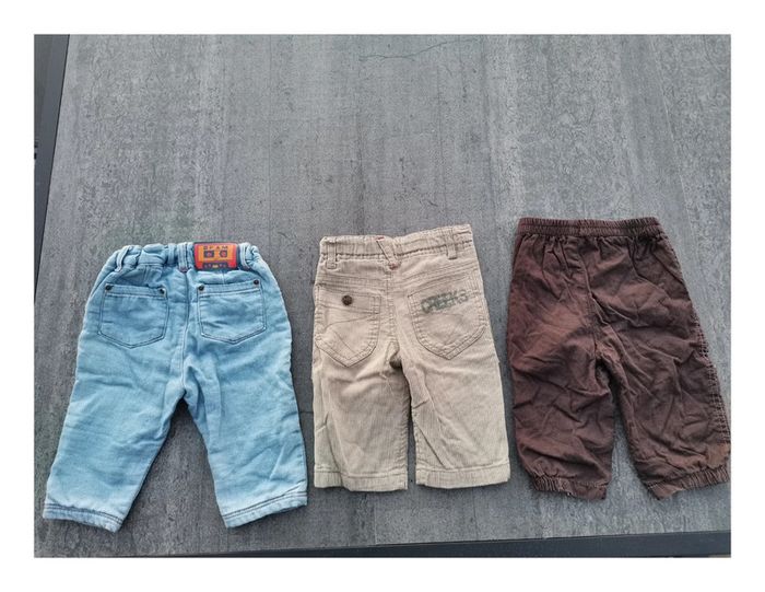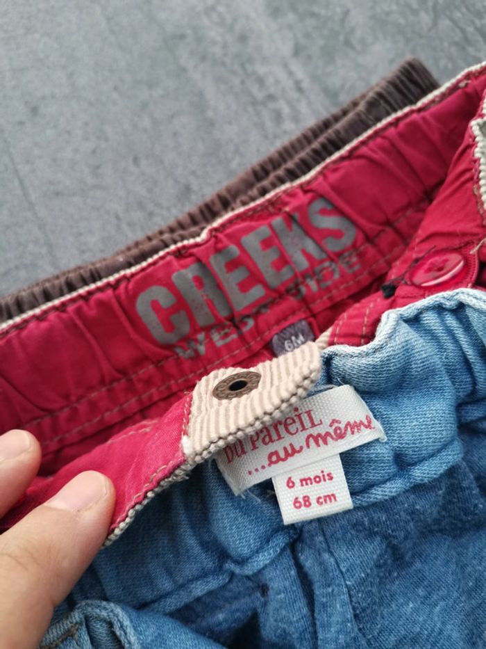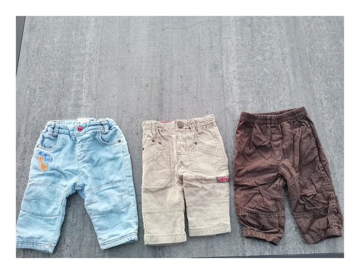 Lot de 3 pantalons. Jean dpam, pantalon crème Creeks. Taille 6 mois. #lotgarçon6moisptilu12 #garçon6moisptilu12 #lotgarçonptilu12 #lotgarçon6mois #lotgarçon #vetementsgarçon #pantalonsgarçon6mois