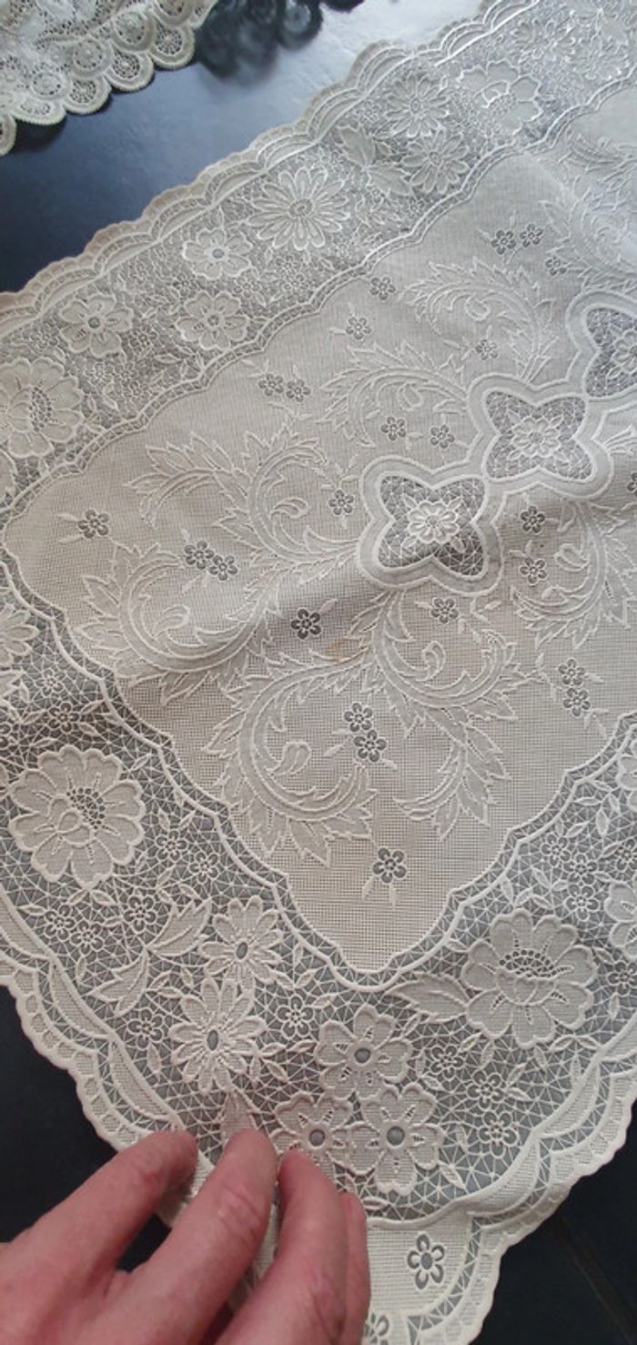 Un en bon etat l autre 2/3 bouts arrachés Mesures sur les photos vendus dans l etat taches également sur l arrière D autres articles vintage disponibles #valpotinaccessoirsmaison