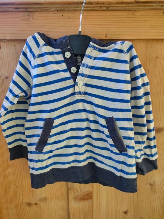 T-shirt manches longues rayé capuche et poches - photo numéro 1