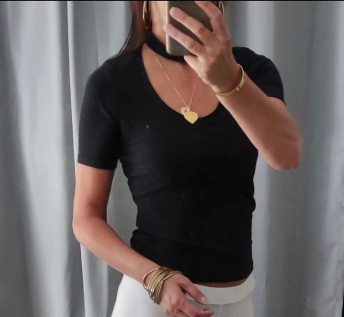 Top ras de cou manches courtes Taille 36 De chez #pimkie Couleur noir uni Matière Coton, Elasthanne Neuf sans étiquette