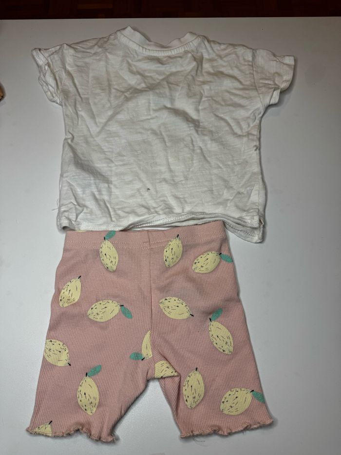 Ensemble bébé fille short arrive jusqu’au genoux porter quelque fois seulement, ne présente aucun défaut en très bonne état