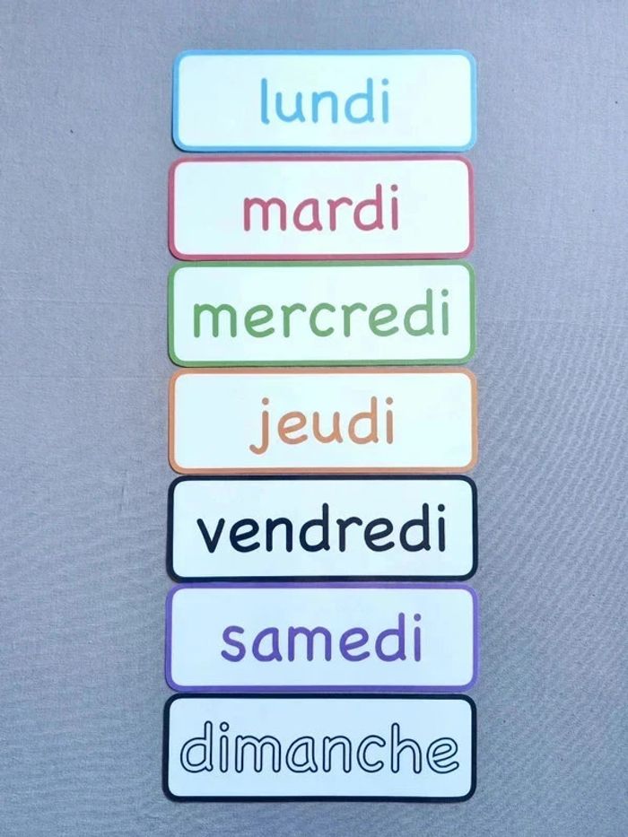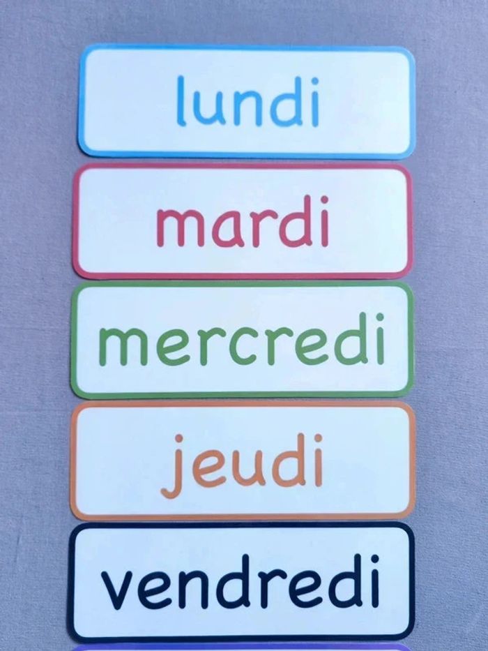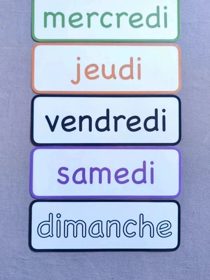 📍Pancartes des jours de la semaine. 📍Papier 250G plastifié pour une bonne tenue ! 📍Taille : 28,5 x 10 cm 📍Neuf. 👉Pour trouver d'autres activités c'est par ici : 🔎#elisabethdesignAfficheA4 📫⏳ Envoi rapide et soigné le jour même de l'achat dans la mesure du possible! 🤝 Frais de port ajusté au plus bas.