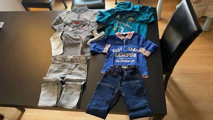 1 pull en laine, 1 pull à capuche 2 tee-shirt manche longue 2 jeans 5 ans