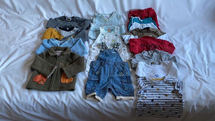 2 pulls 2 gilets 1 pull sans manche 2 salopettes short 3 shorts 4 tee-shirts manches longues 1 tee-shirt manche courte