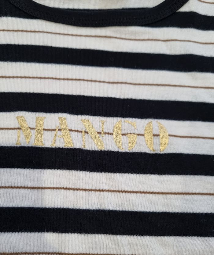 T-shirt blanc noir et or à rayure Mango taille M - photo numéro 2