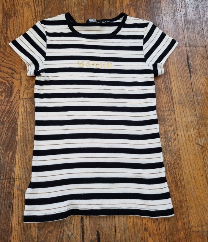 T-shirt blanc noir et or à rayure Mango taille M - photo numéro 1