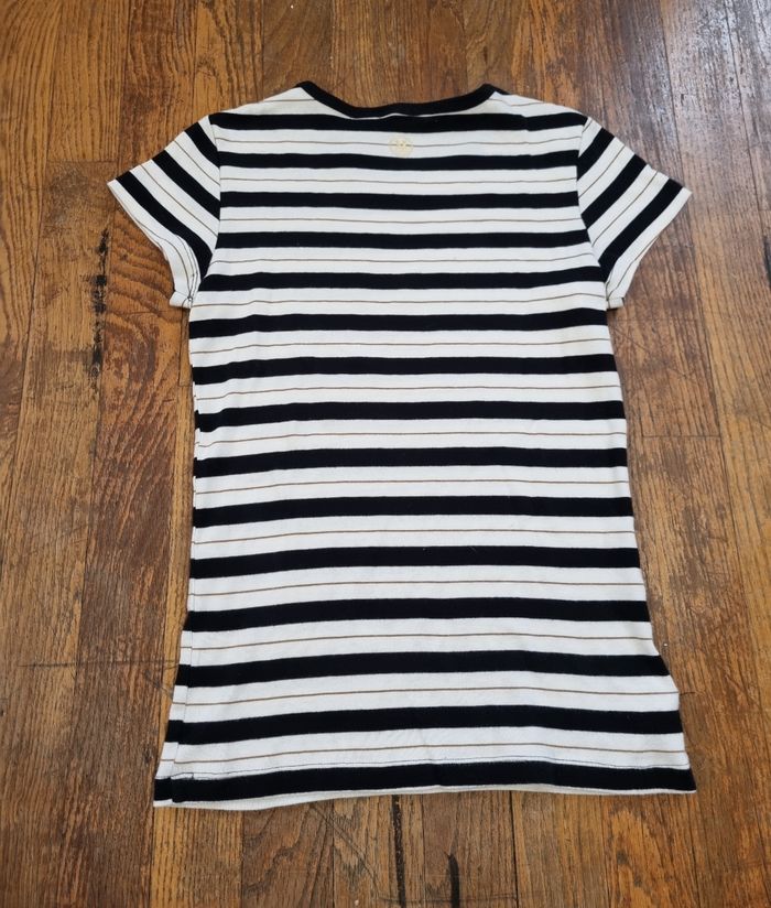 T-shirt blanc noir et or à rayure Mango taille M - photo numéro 3