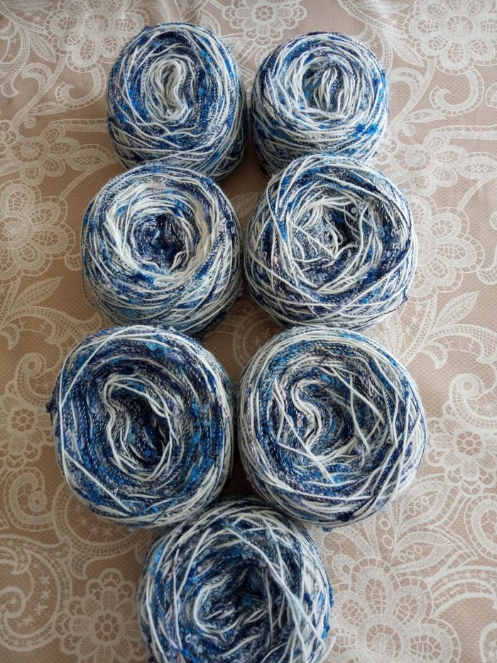 Lot de 7 Pelotes Fantaisies Tons Bleus et Blancs (500g) - photo numéro 1