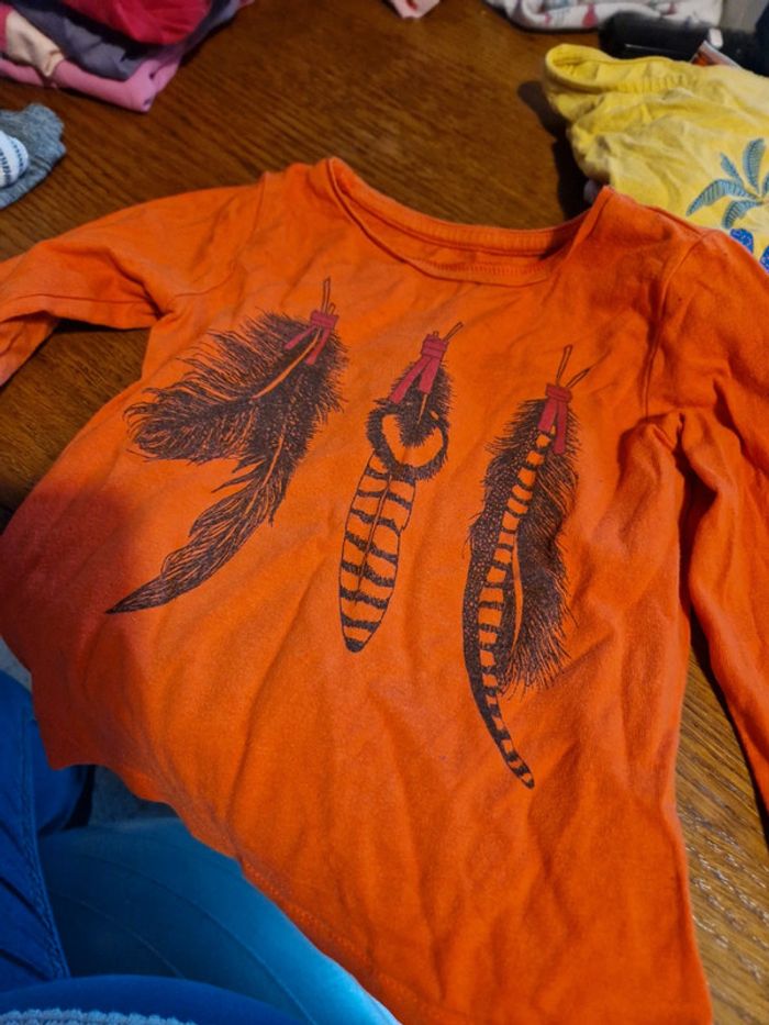 Lots 3 t-shirts Manches longues Minnie Plume Tons jaunes oranges 2 ans Pas de tâches ni de trou. Les articles sont scrutés de nouveau avant d'être envoyés. Prix négociable en lot "C9"