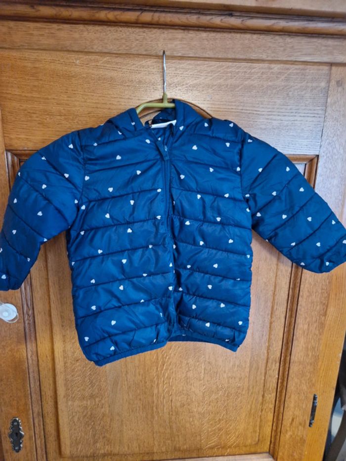 Manteau bleue marine à cœur 2 ans TBE Pas de tâches ni de trou. Les articles sont scrutés de nouveau avant d'être envoyés. Prix négociable en lot "C9"