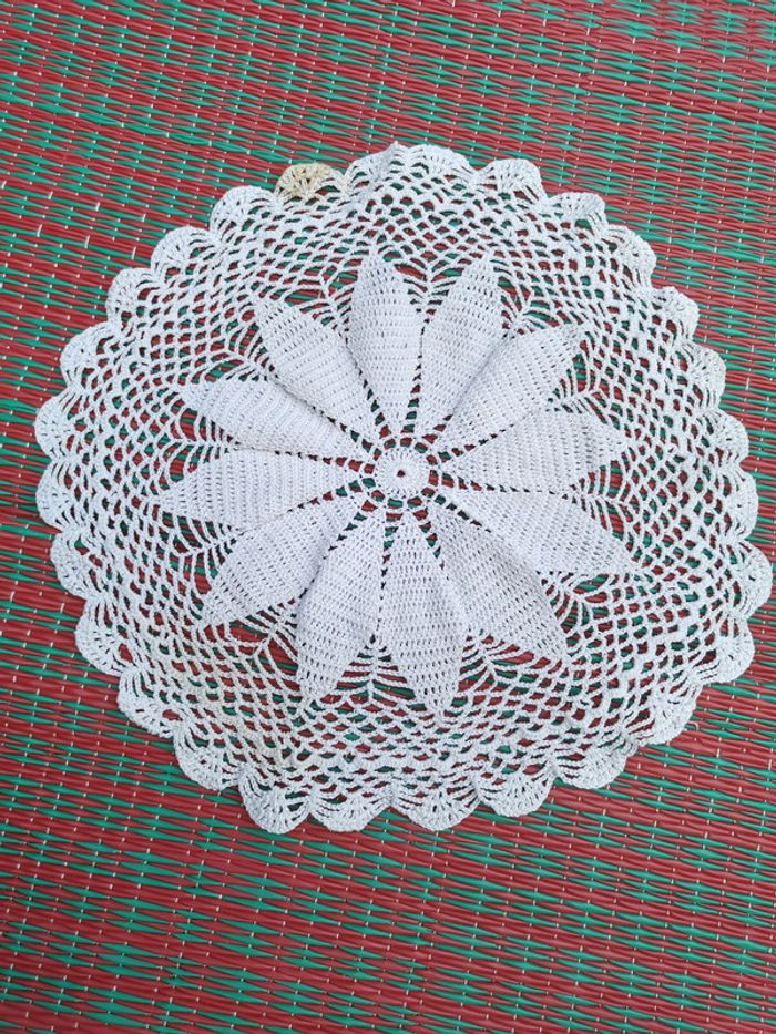 Napperon en coton mercerisé fait main 29 cm de diamètre. Napperon en coton blanc a une tache sur le côté, possibilité de le teindre si la tache ne part pas. Joli napperon, fait main, avec un légère brillance. Décoration retro/vintage. Dimensions : Diamètre : 29 cm Poids : 25g Pensez à faire des lots afin de bénéficier des remises que j'ai régulièrement sur ma page. #napperon #napperonblanc #napperonfaitmain #faitmain #crochet #decodetable