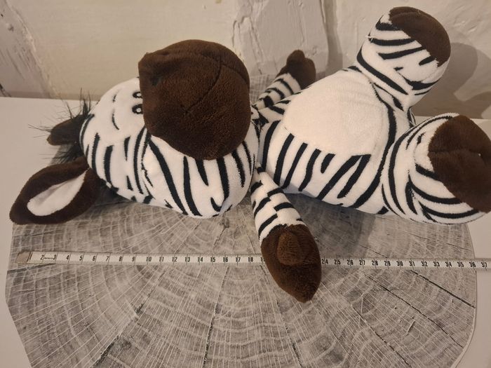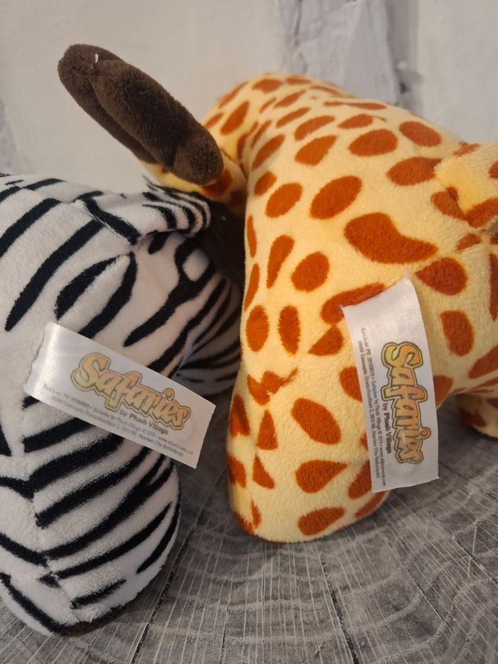 Lot de 2 peluches zèbre et girafe Dimension : 28 cm de hauteur (position assise) Fabricant : Safaries by Plush Villagesa