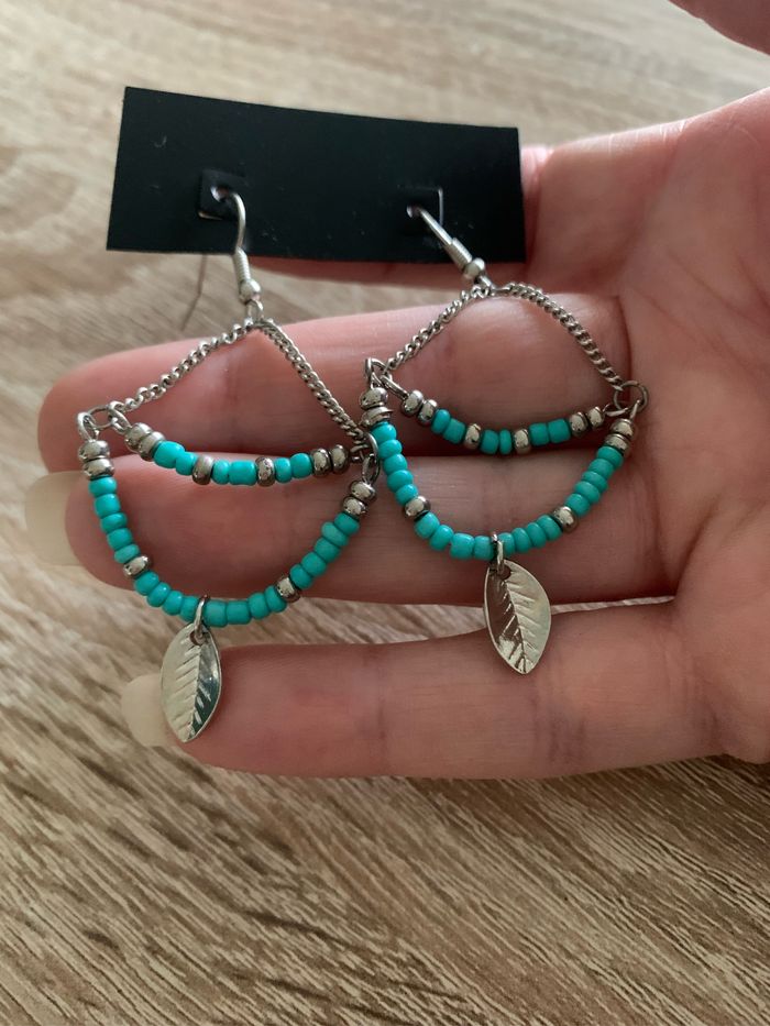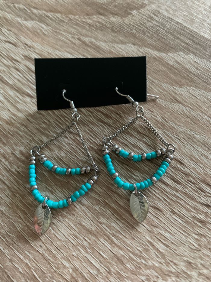 Boucles d’oreilles perles bleues et feuille - photo numéro 1