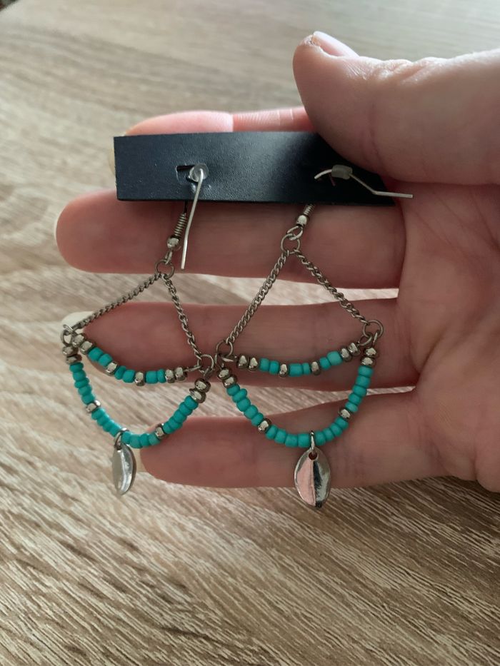 Boucles d’oreilles perles bleues et feuille - photo numéro 3
