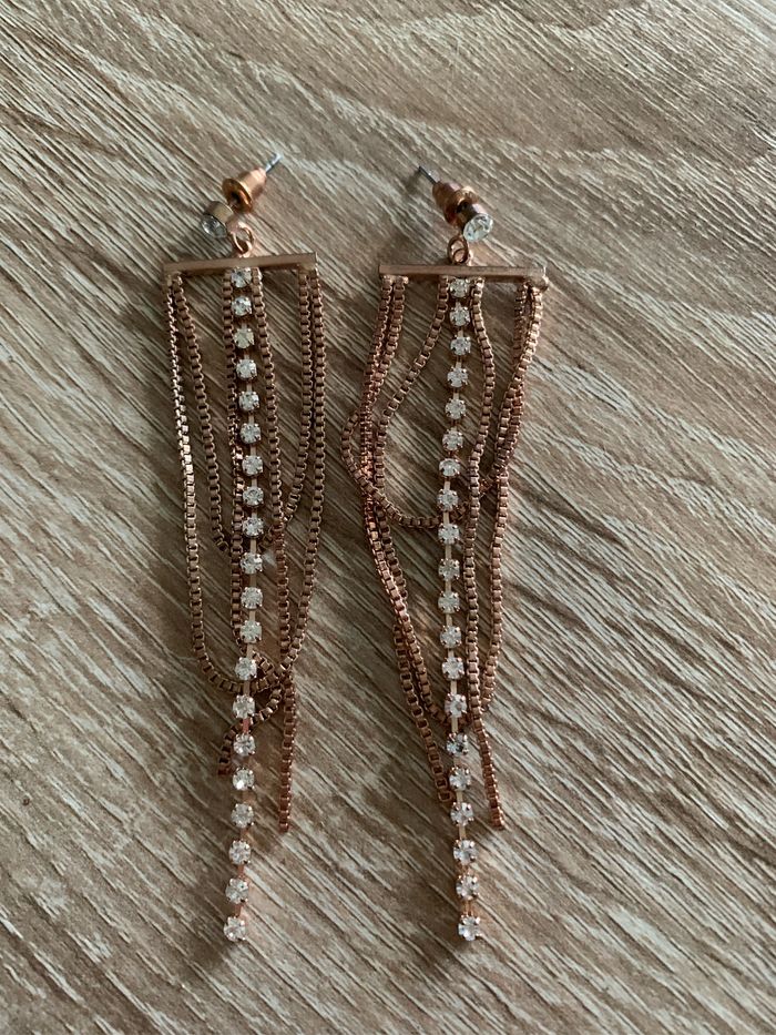 Boucles d’oreilles chaînes pendantes à strass - photo numéro 1