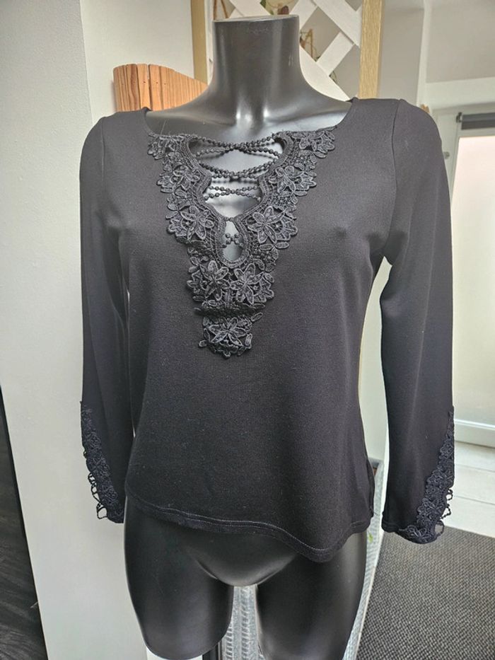 Portée mais reste en très bon état. Elle ne possède plus d'étiquette mais je fais une taille M et me va moulante. Les dimensions se trouvent sur les photos. Matière agréable à porter