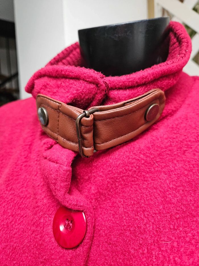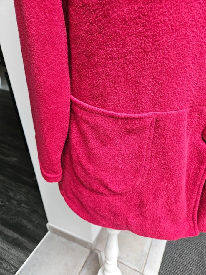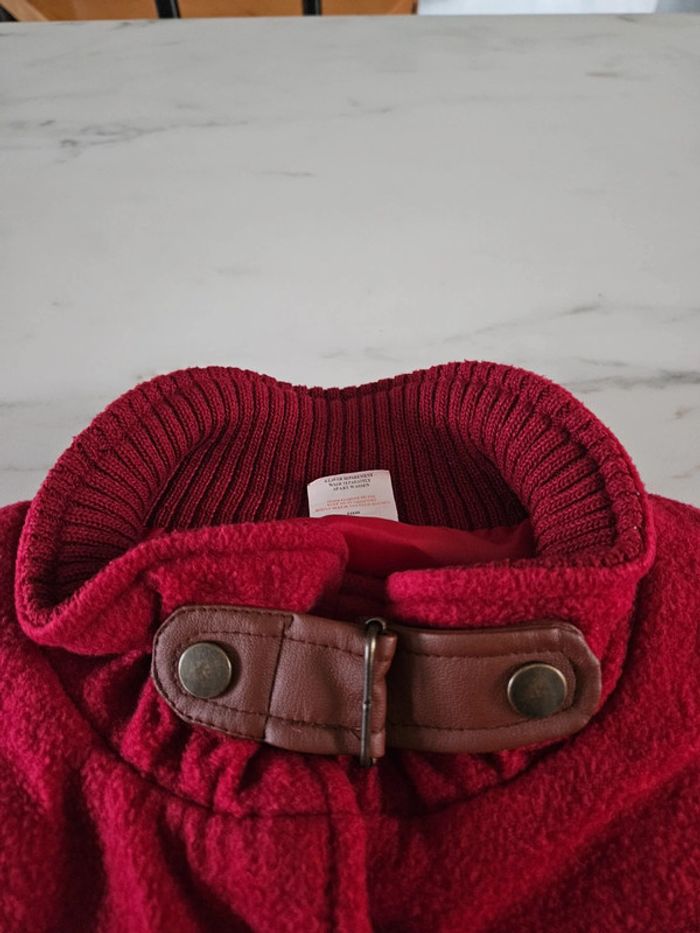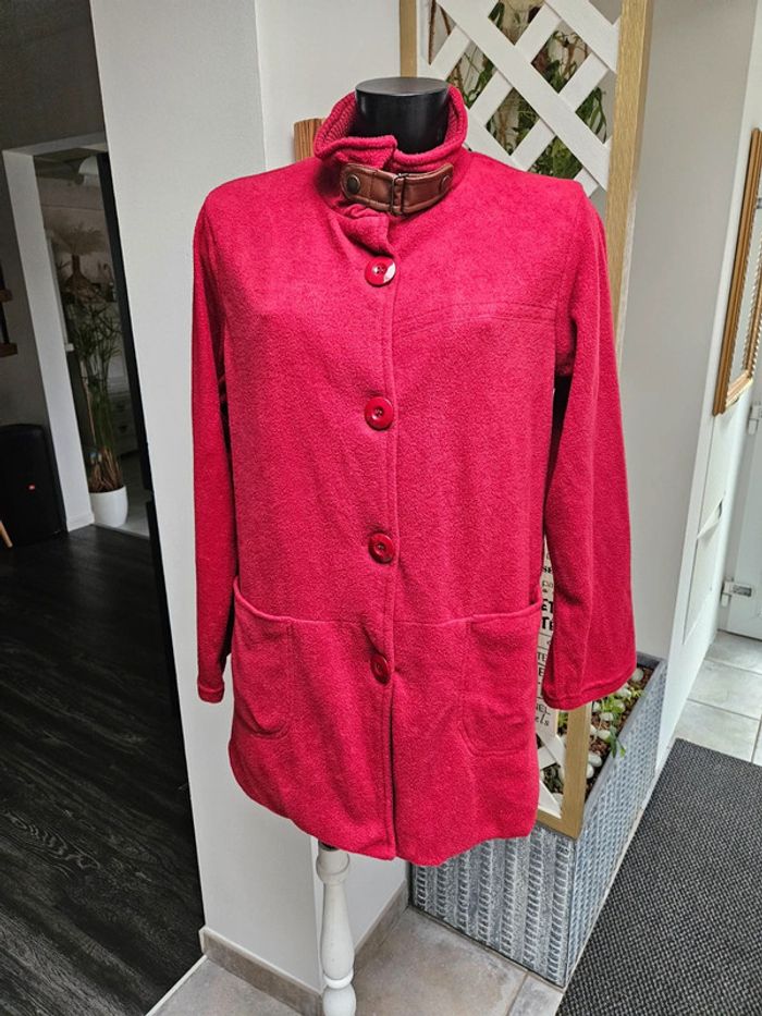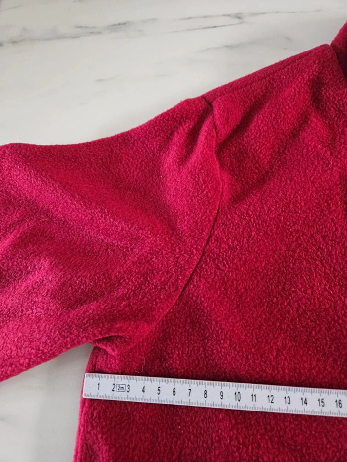 Gilet tout doux. C'est un S/M mais il taille grand Rouge un peu bordeaux. Les dimensions se trouvent sur les photos. Porte mais il reste en très bon état