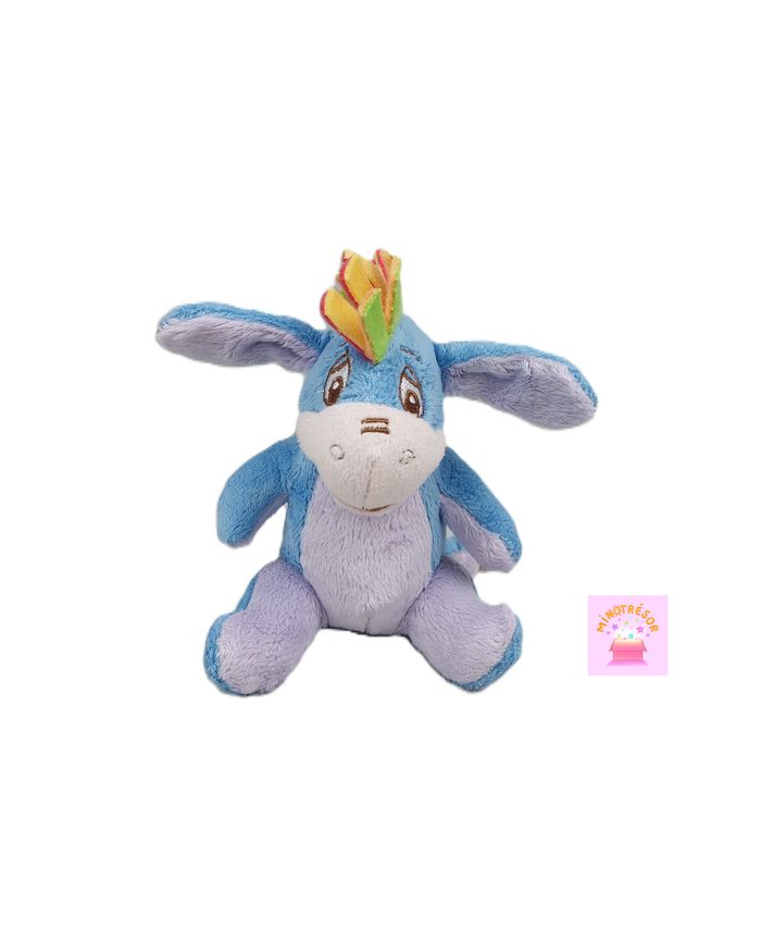 Peluche doudou Bourriquet Disney crinière multicolore 14 cm en bon état, pas d'étiquette Il fait des bruits de papier froissé quand on touche son ventre et ses oreilles Envoi soigné et rapide Réf A10607