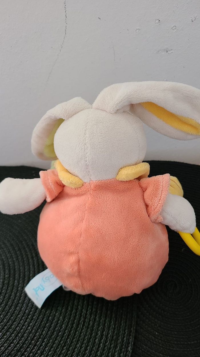 DOUDOU LAPIN STELLOU BABY NAT ORANGE JAUNE VERT ETOILE ANNEAU GRELOT 23cms - photo numéro 4