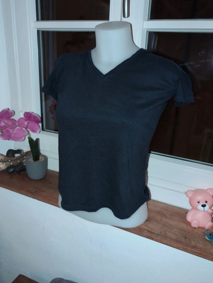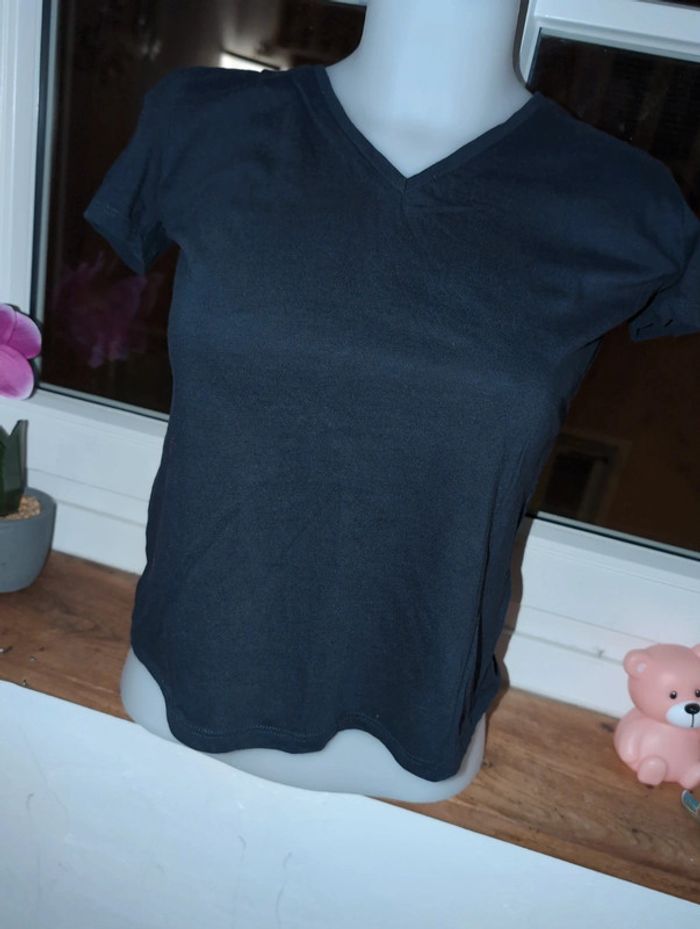 Joli t-shirt marine 100% coton col en V - photo numéro 1
