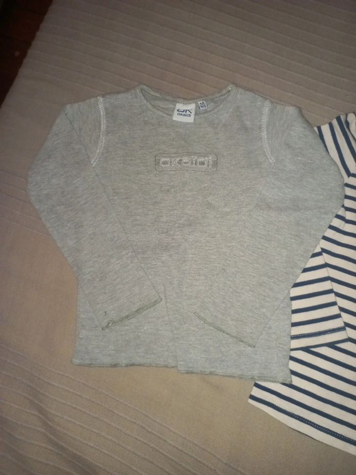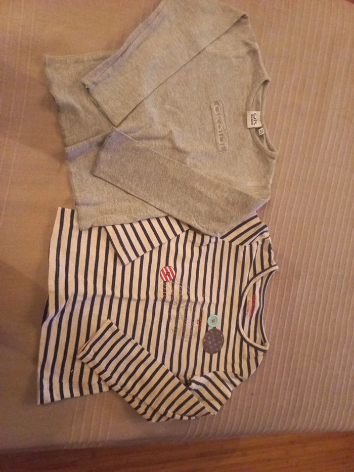 Les 2 en très bon état 1 Orchestra France super joli type marinière, déco en relief 1 Okaidi gris chiné #pullfin #bebe #mixte #souspull #maillotdecorps3ans #tshirtmancheslonguesfille #hiver #printemps #bebe24mois #bebe36mois